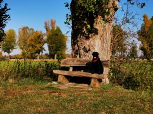Für Ayka ist es immer ein toller Spaziergang auf den Rheinwiesen in Lörick bzw. Niederkassel. Los geht es an der Theodor-Heuss-Brücke in Düsseldorf-Niederkassel. Es finden sich eigentlich immer genug Parkplätze dort. Auf dem Niederkasseler Deich habt ihr eine tolle Aussicht über die Rheinwiesen bis zum Strandbad Lörick. Links neben der Brücke führt eien Treppe den Deich hinunter. Unten spaziert ihr dann direkt links auf den Wiesenpfad, der euch über die Rheinwiesen führt. Für Hunde ist das hier eine riesige Freilaufwiese. Bitte beachtet aber, dass hier auch Viehfutter auf den Wiesen geerntet wird. Die Hinterlassenschaften von euren Hunden gehören daher immer in den Kotbeutel. Aber dann steht einem Tollen und Toben auf den Rheinwiesen Lörick nichts merh im Wege. Zwischen durch kommt ihr an alten Baumstämmen und kleinen Buschinseln vorbei.Für eine kleine Pause eignet sich die Holzbank unter einem alten Baum etwa in der Mitte der Rheinwiese. Auch Ayka nutzt diesen Platz für eine kleine Pause und tobt dann mit anderen Hunden oder ihrem Stock weiter.