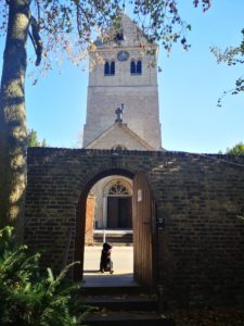 Schön, dass ihr noch ein wenig mehr von Kalkum sehen wollt. Wenn ihr aus dem Törchen wieder auf der Straße vor der Lambertus Kirche angekommen seid, wendet ihr euch nach links und schwenkt die nächste Straße (Edmund-Bertram-Str.) rechts ein. Ihr folgt der Straße weiter geradeaus, die nach kurzer Zeit Friedhofsweg hießt. Auf der rechten Seite seht ihr den Friedhof von Kalkum. Vor euch öffnet sich bereits die Landschaft und über eine Straßenkreuzung hinweg geht ihr schnurgerade aus einen Feldweg entlang. Da der Flughafen nicht weit ist, seht und hört ihr sicherlich die landenden und startenden Flugzeuge.
